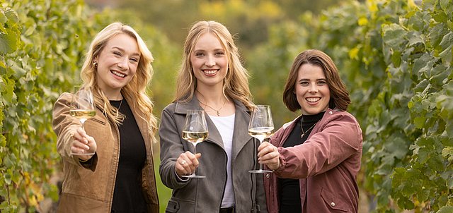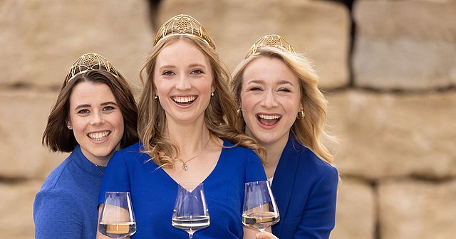 "Die ersten paar Wochen sind vergangen und wir wurden bestens von vielen Menschen an der Mosel, an Saale-Unstrut und an der Hessischen Bergstraße empfangen", berichten die Deutschen Weinmajestäten Katja Simon, Anna Zenz und Emma Meinhardt.